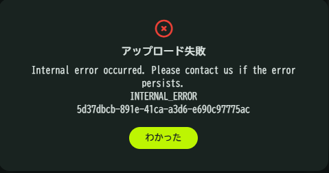 こんな感じで、アイコンやバナー、通常ノートで画像をMisskeyにアップロードしようとするとINTERNAL_ERRORが起きてしまう問題を解決します。